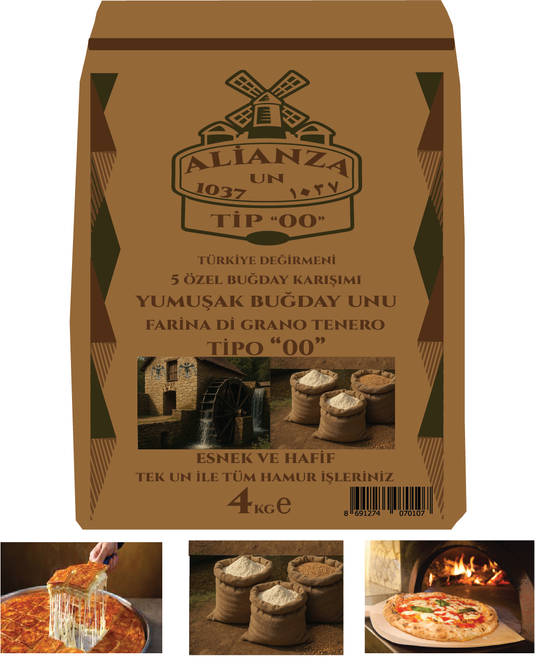 ALİANZA TİP '00' UN ÖZELLİKLERİ Özel buğday karışımları sayesinde,ürün yelpazemizde yer alan,5 ayrı Özel buğday karışımı,çeşitli tatlar ve dokuları,bir araya getirerek enzim kullanılmadan zenginleştirilmiştir.Bu karışımlar sayesinde,özellikle PİZZA sektöründe,ve her çeşit hamur işlerinden,ekmek yapımına kadar,bir çok alanda kullanabileceğiniz,yüksek kaliteli un elde etme imkânı bulacaksınız,Un sektörünün